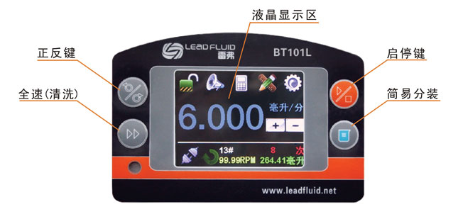 BT301L流量型智能蠕动泵流量范围0.006~1600毫升/分钟。采用彩色液晶和触摸屏技术,操作界面简单,直观,明了。主要适用于精准流量传输控制,用户可以根据自己的需要流量显示,流量控制,流量累计。同时本产品实现了重复定时定量传输。适用于精确计量和定量给料,精度最高可达0.5%,为了减小不必要的蠕动泵噪音,采用了智能温控技术。在RS485通讯中,因为采用了MODBUS协议,更易于与其他控制设备如计算机,人机界面,PLC等连接。